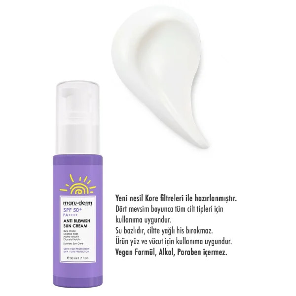 ضد آفتاب ضد لک مارودرم maru.derm ANTI BLEMISH SUN CREAM SPF 50 + PA محصول مراقبتی پوستی است که طیف گستردهای از مزایا و ویژگیهای مفید برای پوست ارائه میدهد.