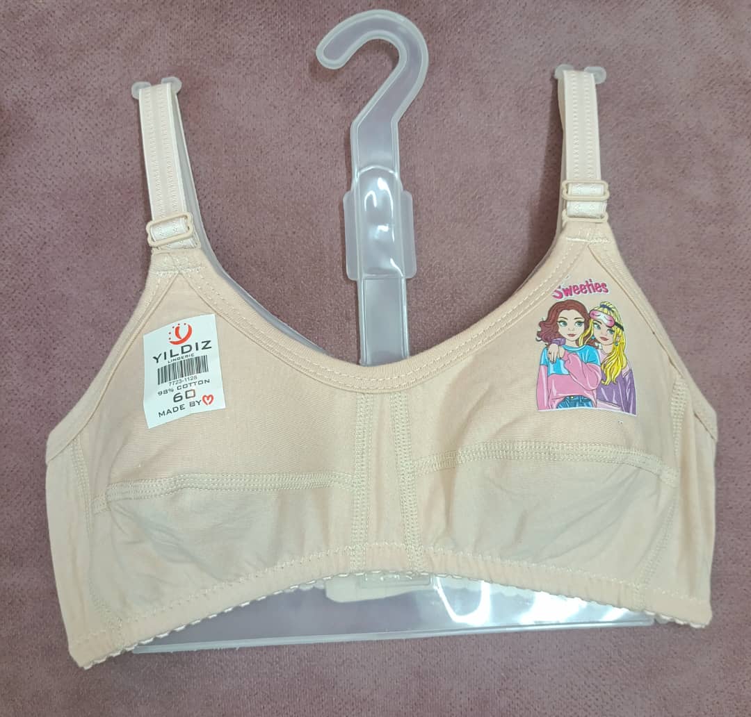 سوتین دخترانه تک چاپ پارچه کتان ترک سایز 60